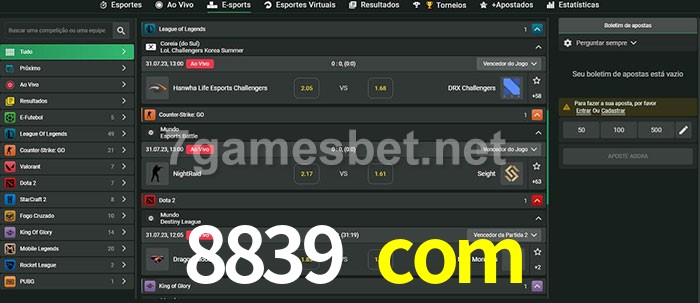 O 8839 com oferece uma grande seleção de opções de apostas em e-sports com probabilidades competitivas